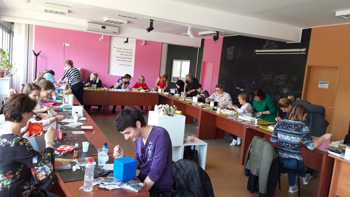 Oni koji su se uspjeli prijaviti, uživali su sa kistom u ruci oslikavajući željene motive i praveći podlogu na kutijama i tacnama koje su potom finalizirali lijepljeći salvete i omiljene motive. Svi učesnici na radionici prvi put su se susreli sa tehnikom dekupaž i izrazili veliko zadovoljstvo što se u Zenici realizuju kreativne radionice kojih je vrlo malo u cijeloj Bosni i Hercegovini.