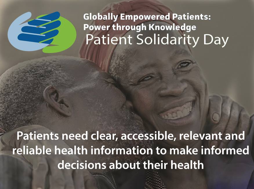 Drugi decembar, Dan solidarnosti bolesnika – U subotu, 2. decembra 2017., pacijenti i zainteresirani sudionici iz svih sedam svjetskih regija će stajati zajedno, ujedinjeni u proslavi Dana solidarnosti pacijenata. Ovo će biti sedma godina u kojoj se pacijenti pridružili rukama da obilježavaju Dan. U decembru ćemo iskoristiti priliku da podignemo svijest o značajnoj potrebi i koristima pacijenata osposobljenih i informiranih. Ove godine je jedinstvena prilika da dodate svoj glas u jedinstveni poziv za osnaživanje pacijenta kroz znanje.