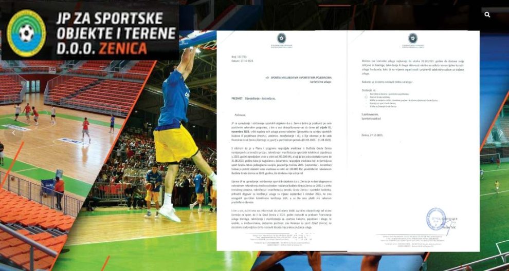 Ovo se može naslutiti iz dopisa kojeg je sportskim kolektivima u Zenici, naglašavamo, drugi put ove godine, uputio Nedim Talić, direktor Javnog preduzeća za održavanje i upravljanje sportskim objektima Zenica, koje “gazduje” Arenom, ali i nizom drugih sportskih terena.