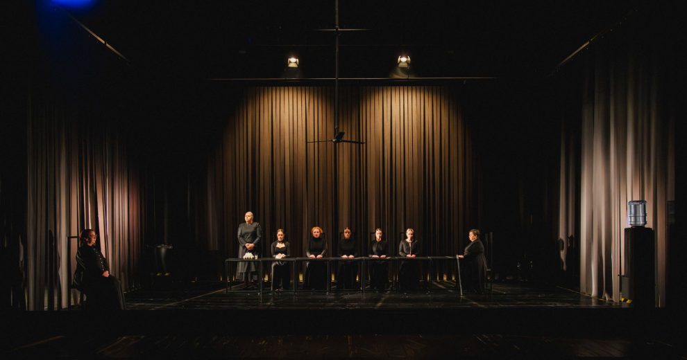 Prema riječima dramaturginje Nedžme Čizmo: „Drama počinje jednog popodneva kada se udovica Bernarda Alba vraća sa sahrane svog drugog muža i saopštava svojim kćerkama da će njihova žalost trajati osam godina. Za to vrijeme one ne smiju izaći iz kuće, čak ni gledati kroz prozore. ‘Dom Bernarde Albe’ nije tek prostor iza zatvorenih prozora, već eho jedne duboko ukorijenjene tišine – tišine koja se generacijama učila, naslijeđivala, pa i slavila kao vrlina. U Španiji pod Frankovom diktaturom, ta tišina je dobila zvaničnu formu kroz Žensku sekciju – instituciju koja je ženama propisivala kako da hodaju, kako da sjede, kako da govore, kako da vole. Učili su ih da poslušnost nije izbor, već priroda. Da sloboda nije pravo, već grijeh.“