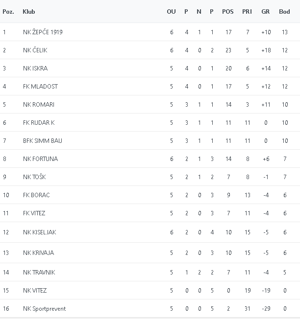 Nakon nepotpunog šestog kola, Čelikovi juniori nalaze se na prvoj poziciji na tabeli uz 26 postignutih i 2 primljena gola.