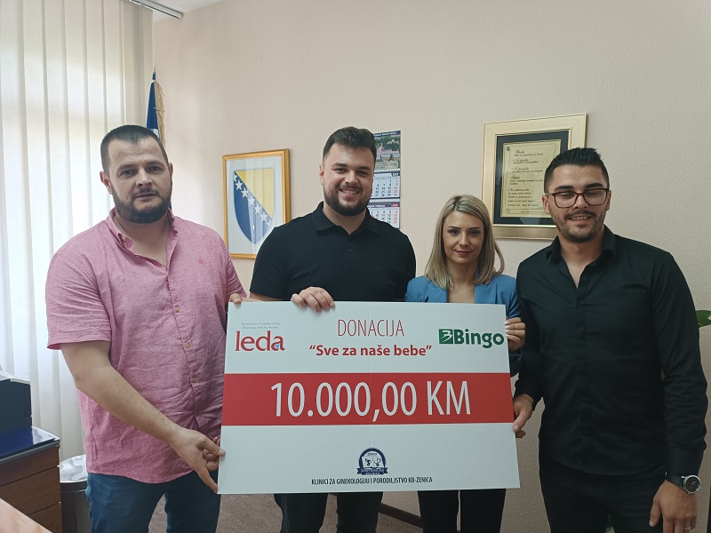 Dvije donacije po 10.000 KM Bingo i Leda su donirali za podršku porodilištima u Bosni i Hercegovini i to Univerzitetsko kliničkom centru Tuzla i jučer Kantonalnoj bolnici Zenica.
