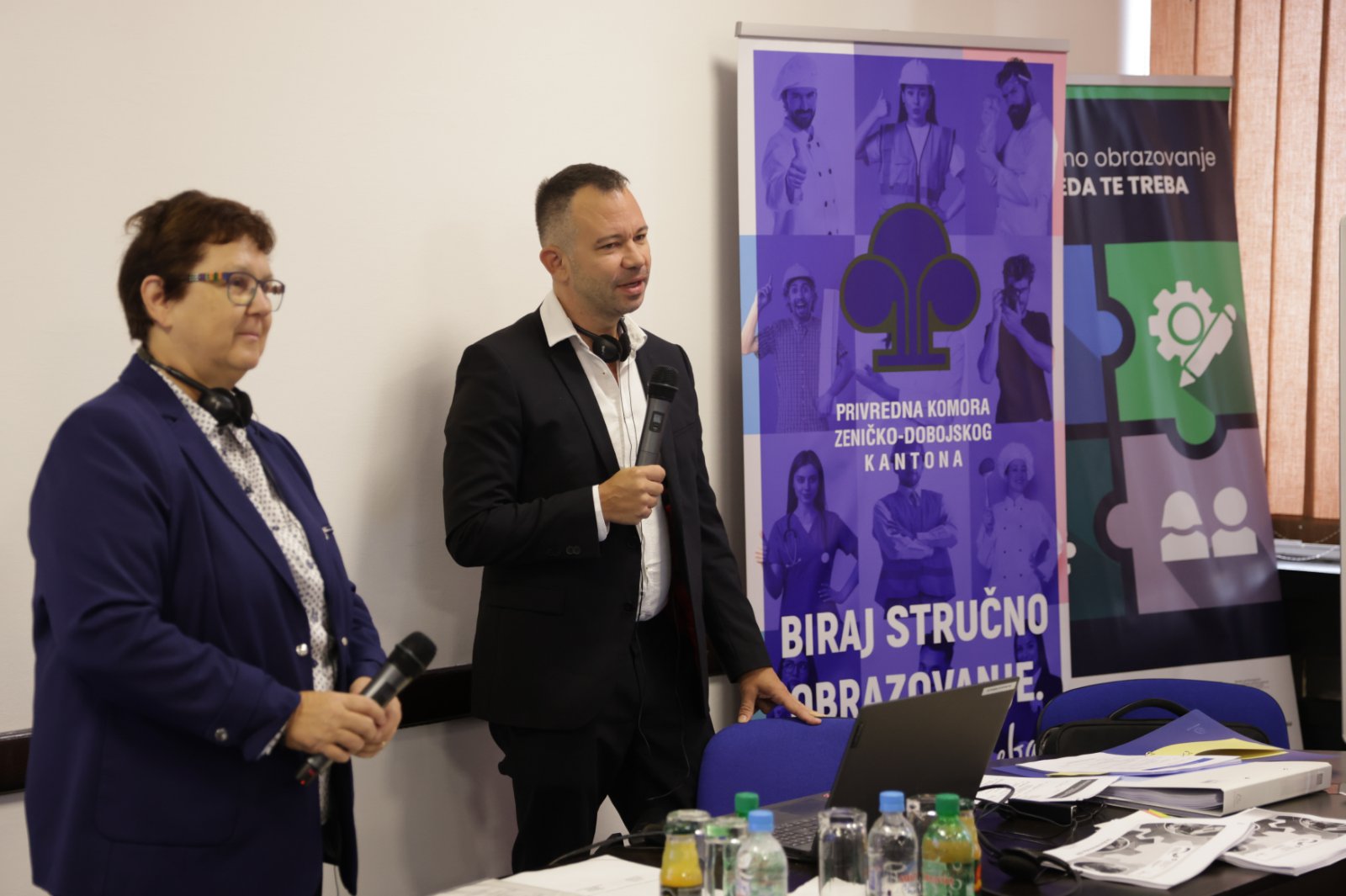 Azra Begagić, Šef kabineta Predsjednice Privredne komore Zeničko-dobojskog kantona, u svom uvodnom obraćanju istaknula koliko je za uspješno dualno organizirano stručno obrazovanje, obzirom na sve veće tehničke i digitalne promjene svijeta rada, važna jača saradnja između različitih mjesta učenja kao i povezivanje školskog znanja s praktičnim iskustvom sa tržištem rada.