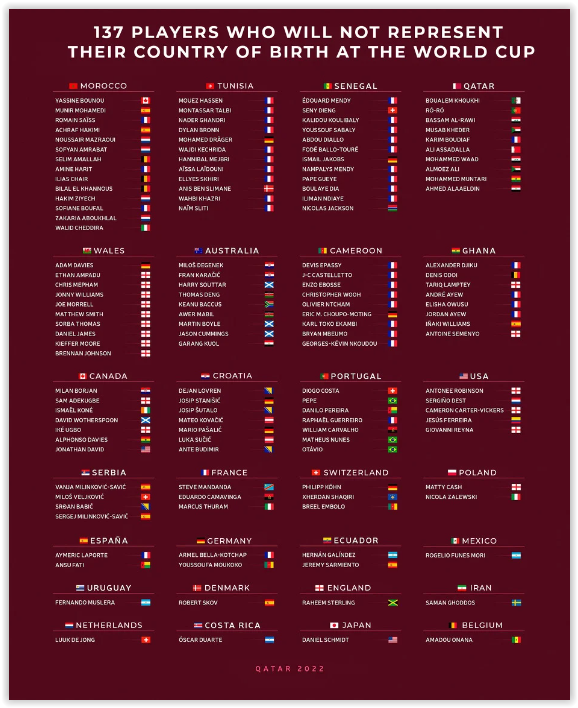 Na Svjetskom prvenstvu u Kataru ukupno 137 nogometaša neće igrati za zemlju svog rođenja, a na listi su i četri igrača rođena u BiH.