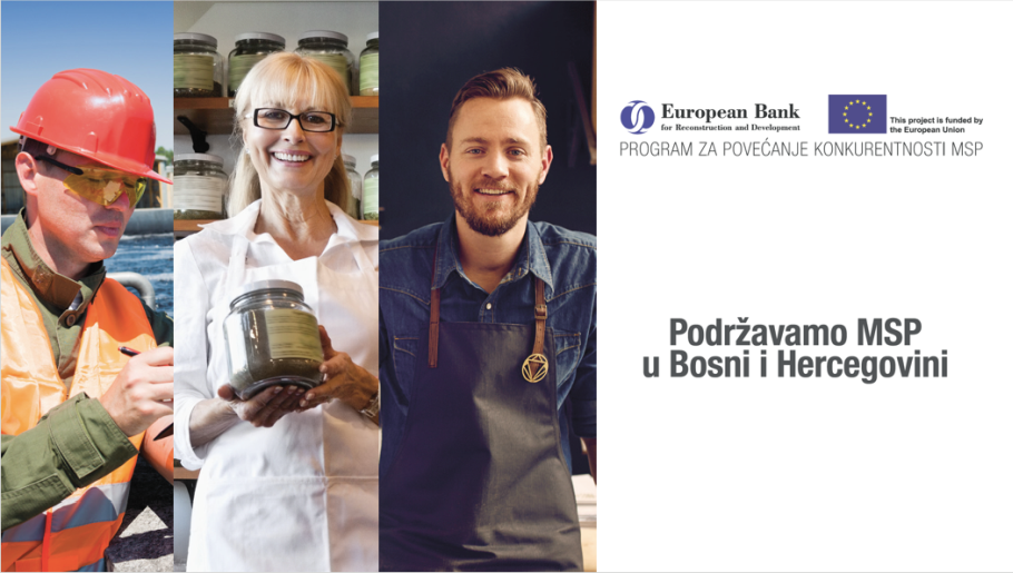EBRD i EU podržavaju mala i srednja preduzeća u BiH – Evropska banka za obnovu i razvoj (EBRD) i Evropska unija (EU) uspješno provode projekat “Program za povećanje konkurentnosti malih i srednjih preduzeća u BiH”. Godinu dana nakon projekta osigurano je 16,23 miliona eura kredita EBRD-a malim i srednjim preduzećima (MSP), a učesnici projekta mogu očekivati ​​više od 2 miliona eura bespovratnih sredstava Evropske unije.