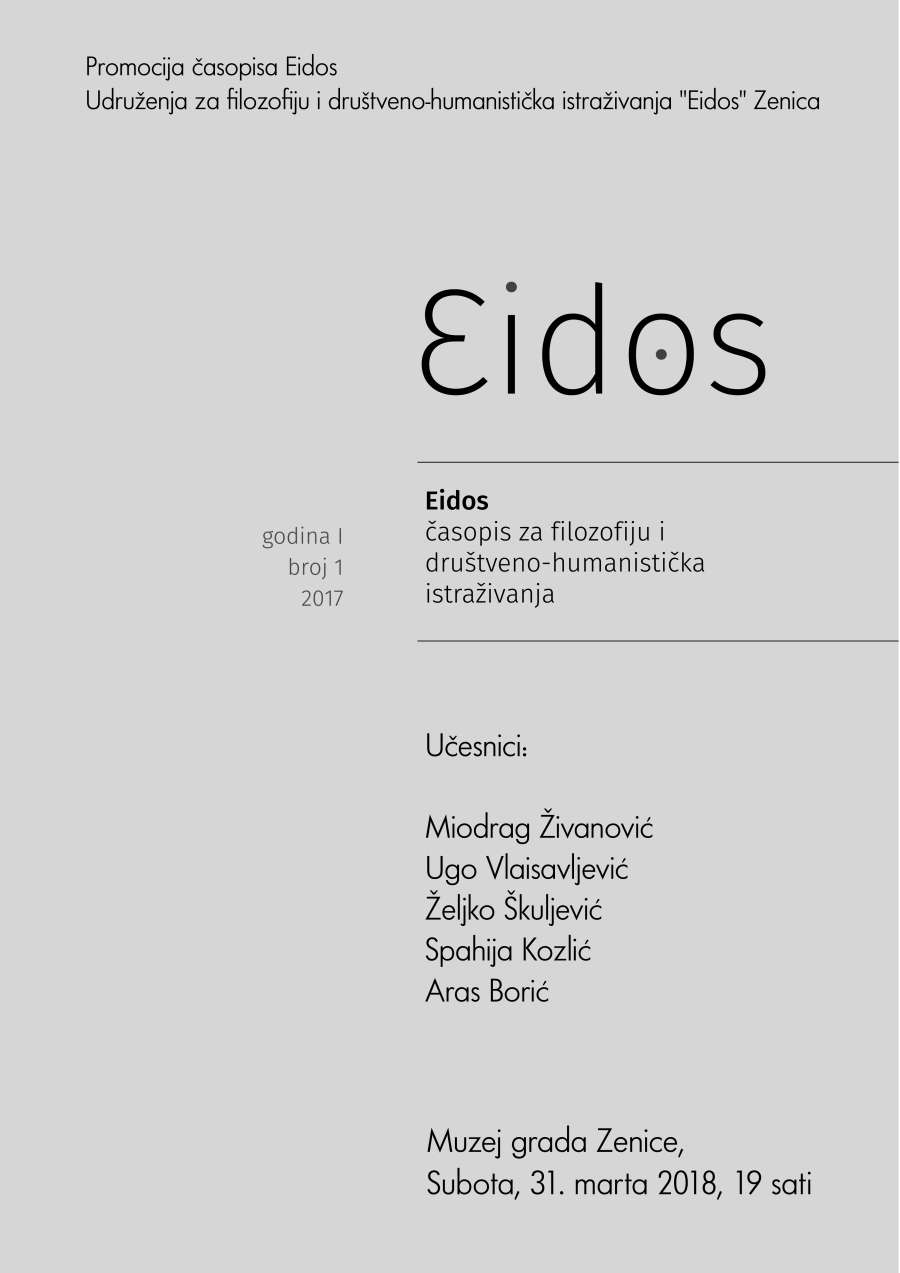 Eidos: promocija prvog broja časopisa – subota u 19h – Muzej Grada Zenica – U okviru Međunarodne kulturne manifestacije “Zeničko proljeće” u subotu, 31. marta 2018. godine u Muzeju Grada Zenice sa početkom u 19 sati, u organizaciji Udruženja “Eidos” bit će održana promocija prvog broja Časopisa za filozofiju i društveno-humanistička istraživanja “Eidos”.