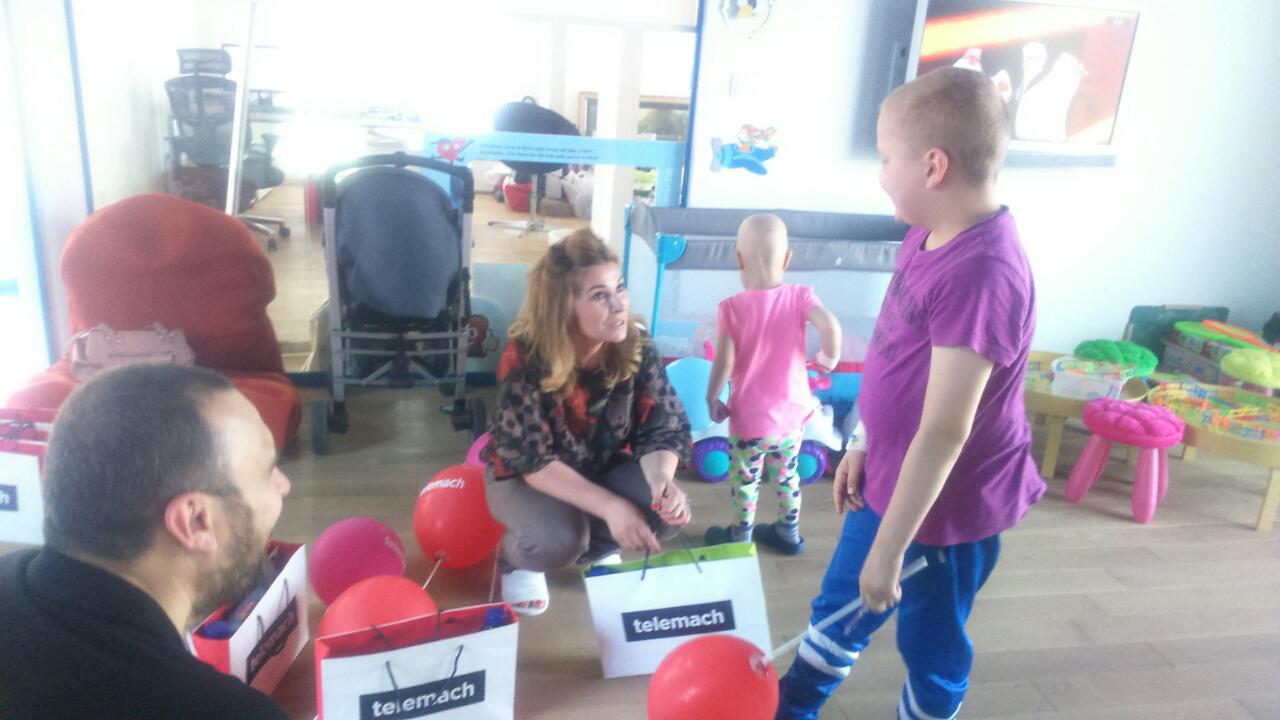 Ekipa Telemacha u posjeti Roditeljskoj kući – Telemach slatki paketići obradovali mališane – Predstavnici kompanije Telemach posjetili su nedavno otvorenu Roditeljsku kuću u Sarajevu, čija je namjena smještaj roditelja i djece oboljelih od malignih oboljenja, koji tokom liječenja dolaze izvan Kantona Sarajevo.