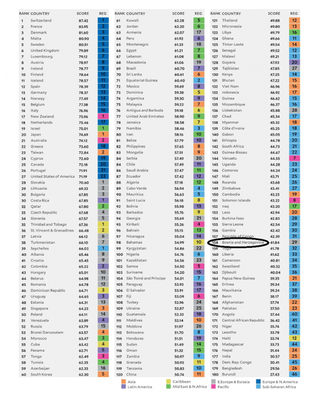Ekologija nam nije jača strana: Od 180 zemalja BiH na 157.mjestu zaštite okoline! – Bosna i Hercegovina je zauzela 158. mjesto (od 180 zemalja) u novoobjavljenom Indeksu ekološke učinkovitosti (zaštite okoline).