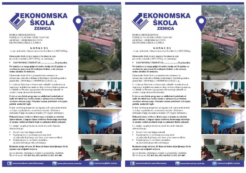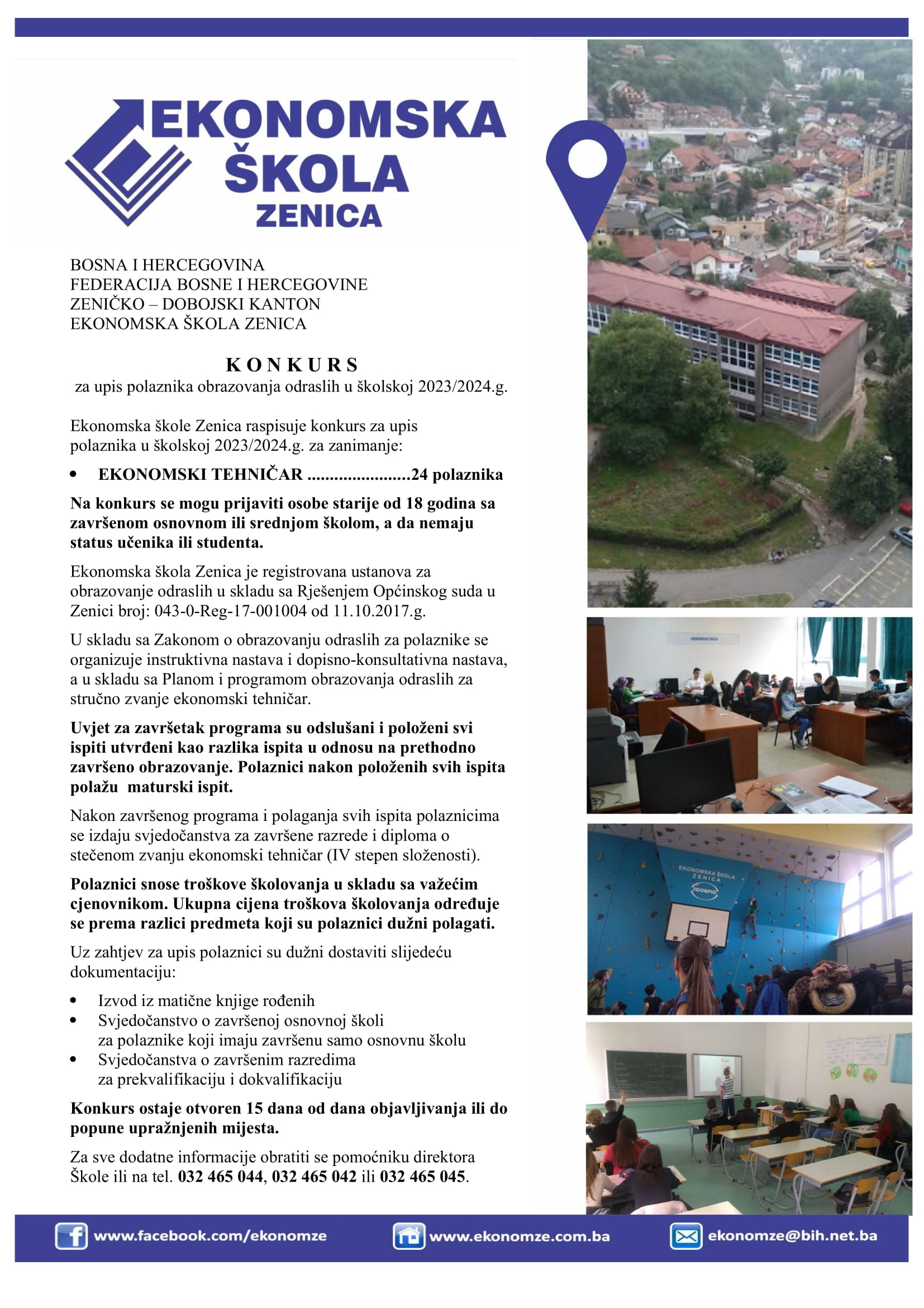 K O N K U R S za upis polaznika obrazovanja odraslih u školskoj 2023/2024.g. Ekonomska škole Zenica raspisuje konkurs za upis polaznika u školskoj 2023/2024.g. za zanimanje: