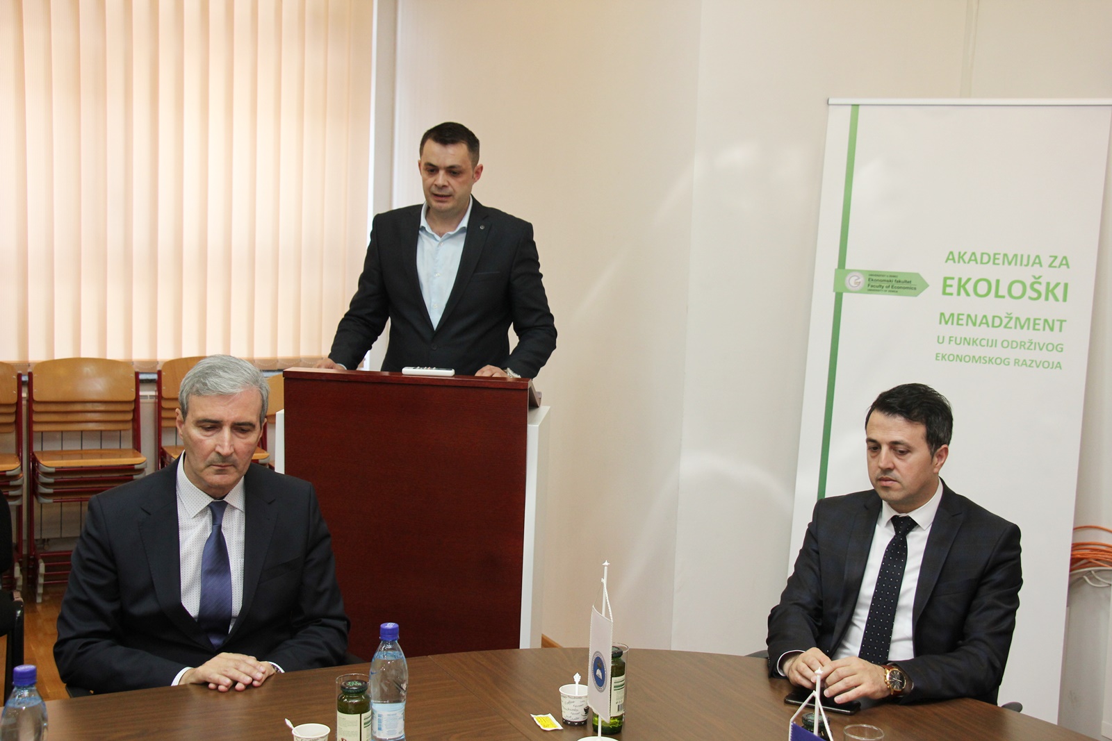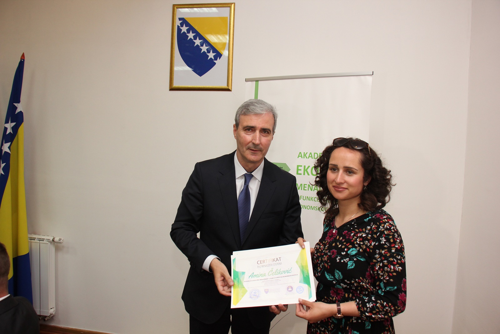 Uz rektora Univerziteta u Zenici prof.dr. Damira Kukića i dekana Ekonomskog fakulteta UNZE, doc.dr.sc. Alaudina Brkića, svečanom uručivanju diploma prisustvovali su premijer ZDK, Mirza Ganić i ministar Ministarstva za obrazovanje, nauku, kulturu i sport ZDK, Spahija Kozić koji su i na ovaj način podržali projekat realizacije “Akademije za ekološki menadžment u funkciji održivog ekonomskog razvoja”.