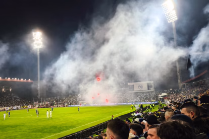 Iako smo mi kao pokret učinili sve što smo mogli da budemo nepopularni, tokom himne se čuo samo aplauz protivnika. Jedini koji je uhvaćen tokom utakmice je Dimarco, ali vrlo diskretno. Na početku utakmice, domaći navijači su priredili prekrasan prikaz, iskoristivši i dimnu bombu i vatromet sa okolnih zgrada. Postoje dijelovi s mjestima iz cijele Bosne, uključujući dva neočekivana, Banja Luku i Livno, koje je vjerovatno donijelo muslimansko stanovništvo gradova. Tu su i ultrasi iz Sandžaka, regije Srbije s bošnjačkom većinom. Jedan dio grupe Torcida se ističe od ostalih. Dva puta tokom utakmice, cijeli stadion skandira “Palestina, Palestina”.