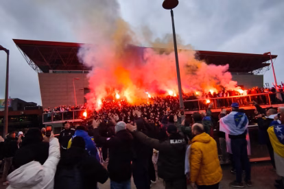 Umjesto toga, atmosfera u Zenici je svečana i vesela, iako kako se utakmica približava, ozbiljnost događaja se osjeća, zatežući lica i ograničavajući osmijehe.