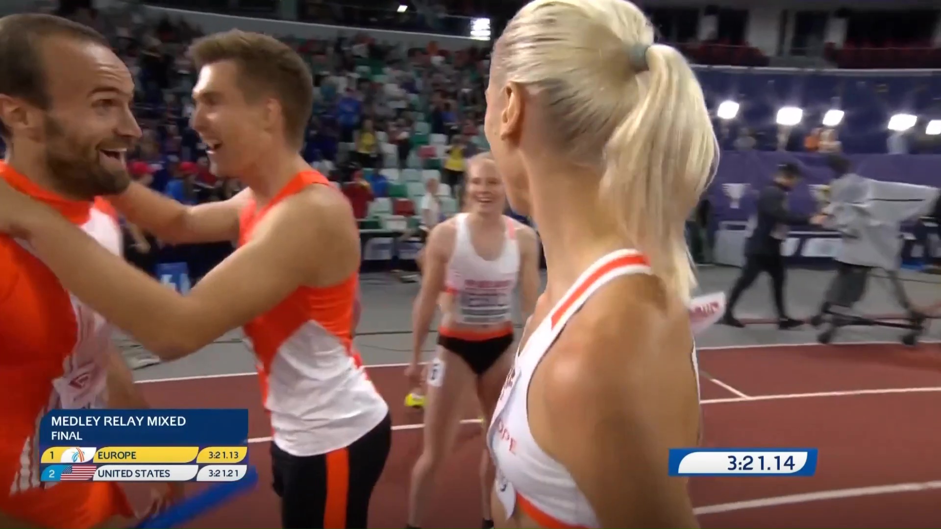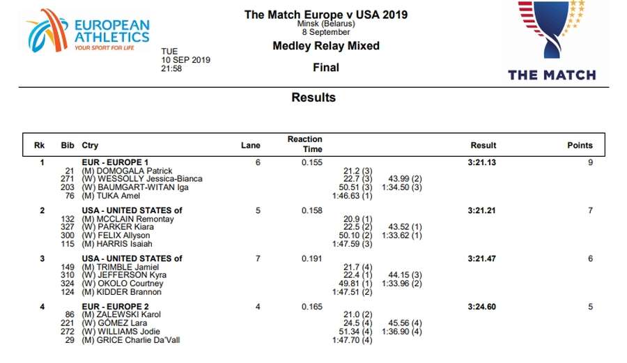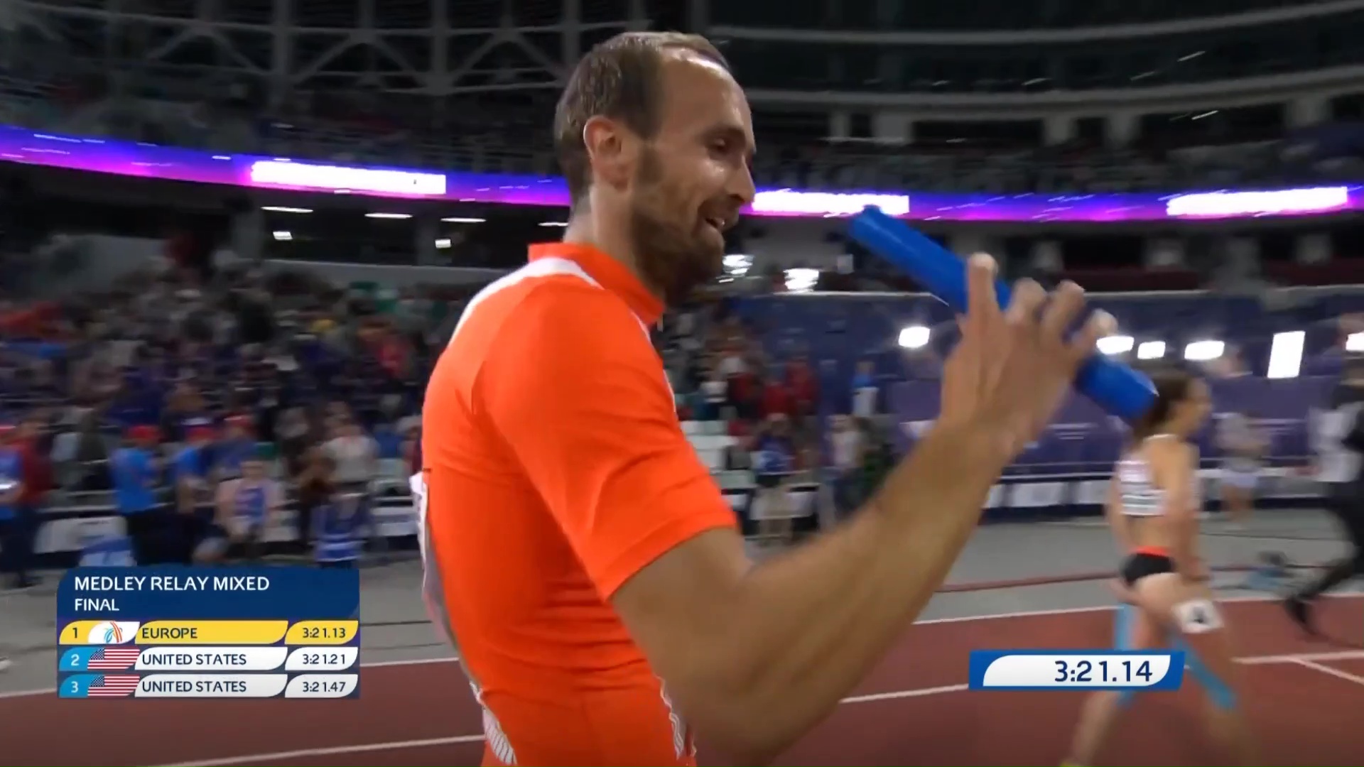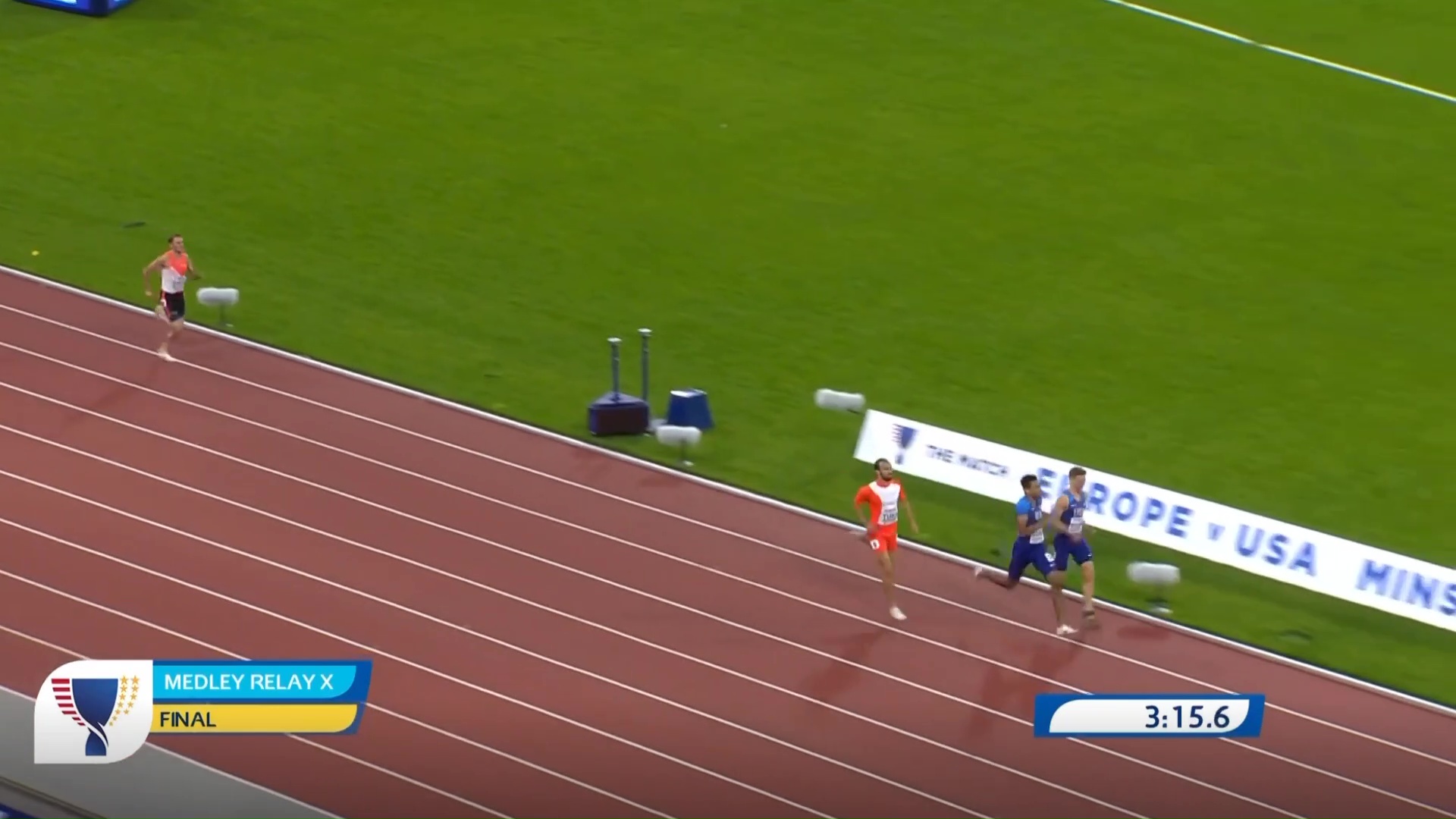 Iako nije najavljivano ranije, naš sugrađanin je večeras trčao i drugi put 800 metara, što je iznenadilo i mnoge koji ga poznaju. Naime, Amel je nastupio u mješovitoj muško-ženskoj štafeti Evropa 1, u posljednjoj 37. takmičarskoj disciplini, na kraju drugog dana dvomeča SAD-Evropa.