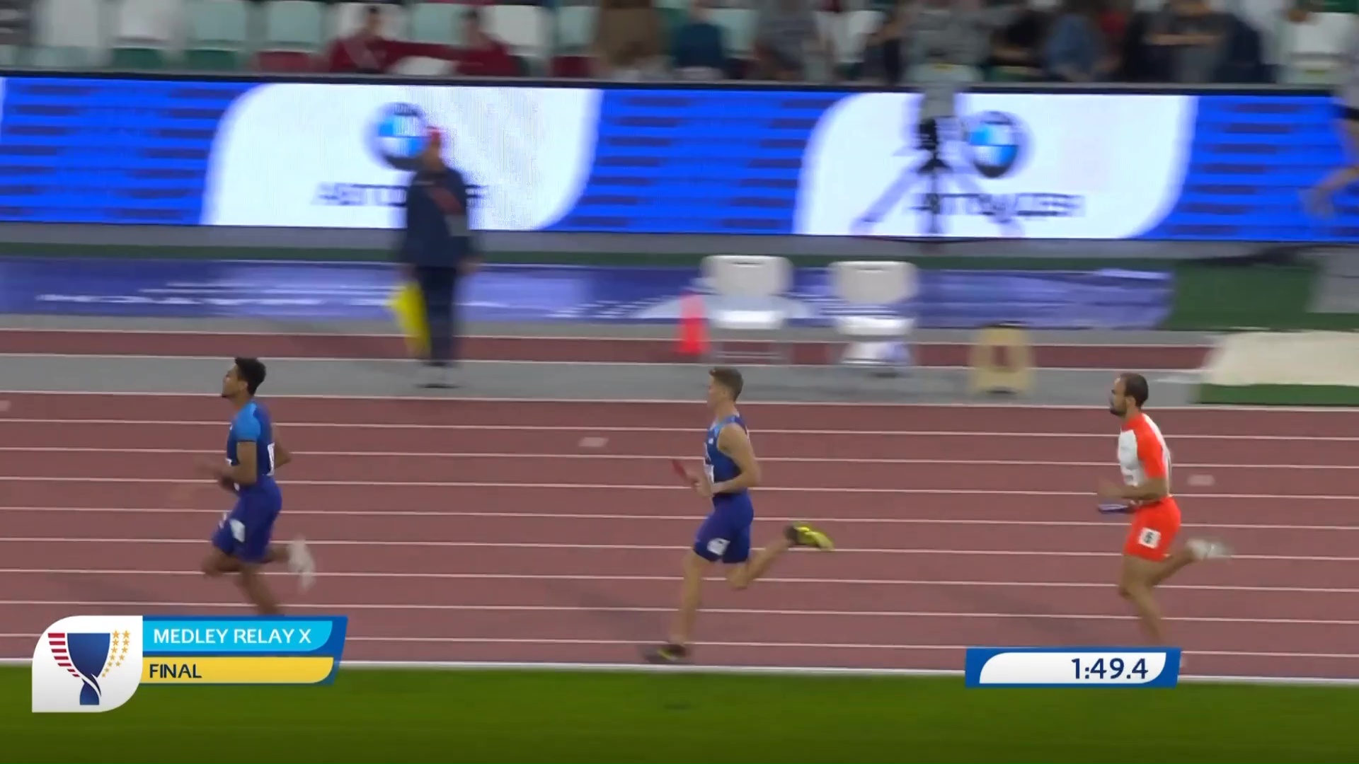 Trčalo se po principu muško 200 metara – žensko 200 metara – žensko 400 metara – muško 800 metara, a Amel je bio posljednji u timu Evropa 1, te štafetnu palicu preuzeo na 3. mjestu, koje je ubrzo prepustio timu Evropa 2.