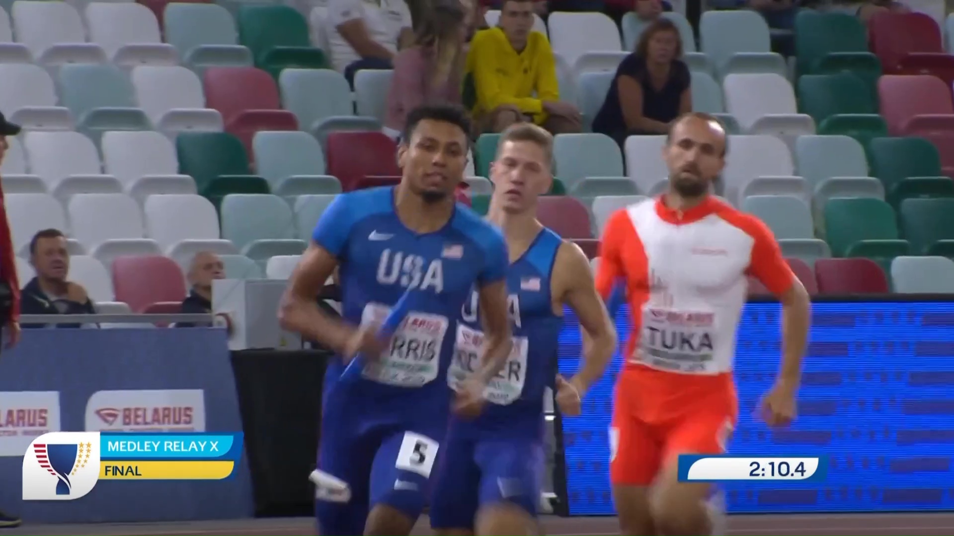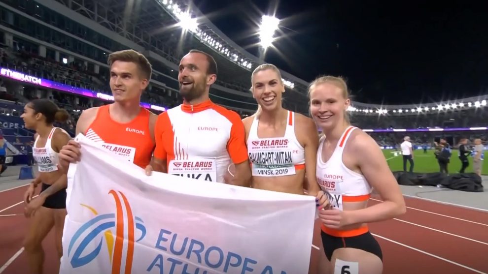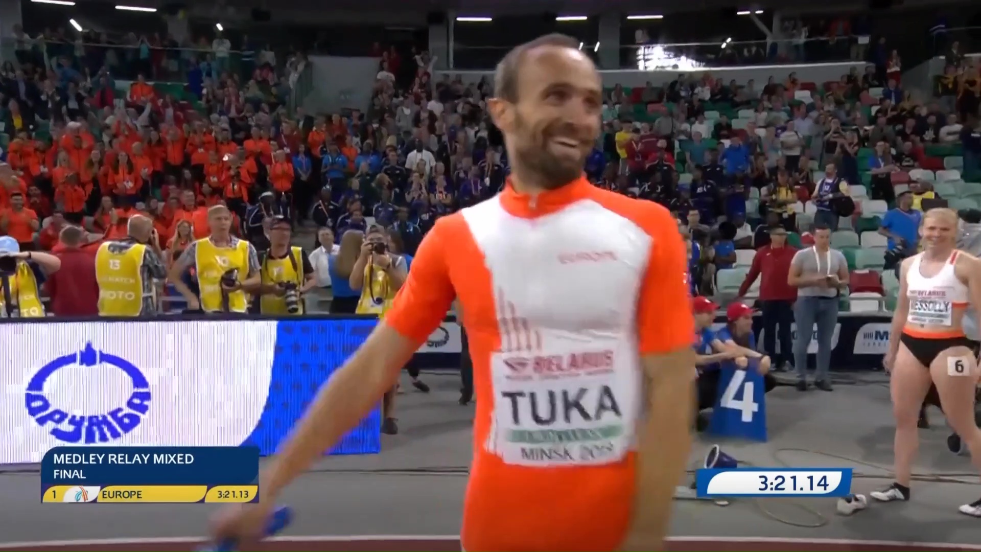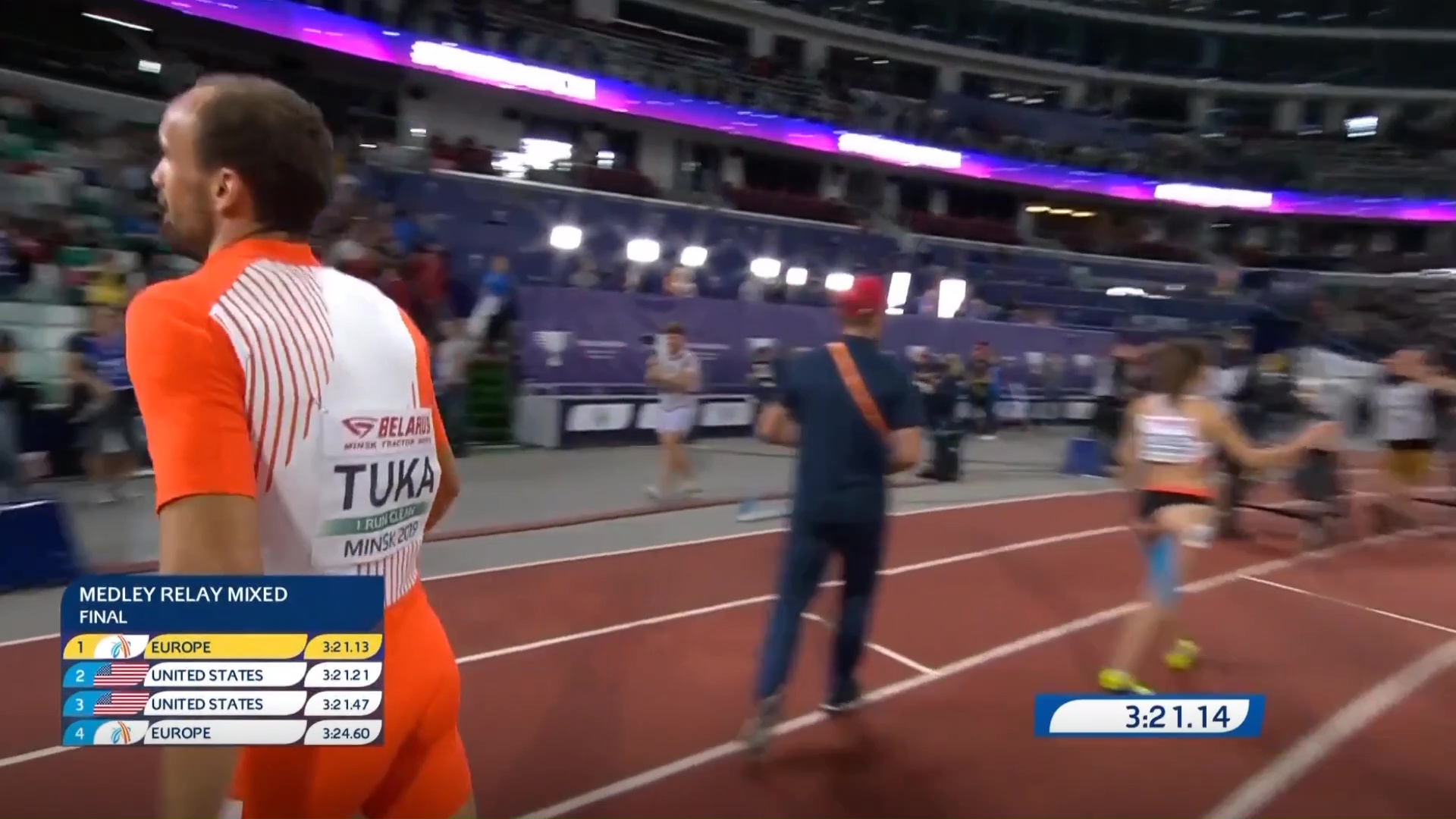 Naš sugrađanin Amel Tuka je iste večeri u Minsku, Bjelorusija, trčao još jednu trku, ovaj put mješovitu žensko-mušku štafetu na 1.600 metara, koju je “izvukao” do pobjede.