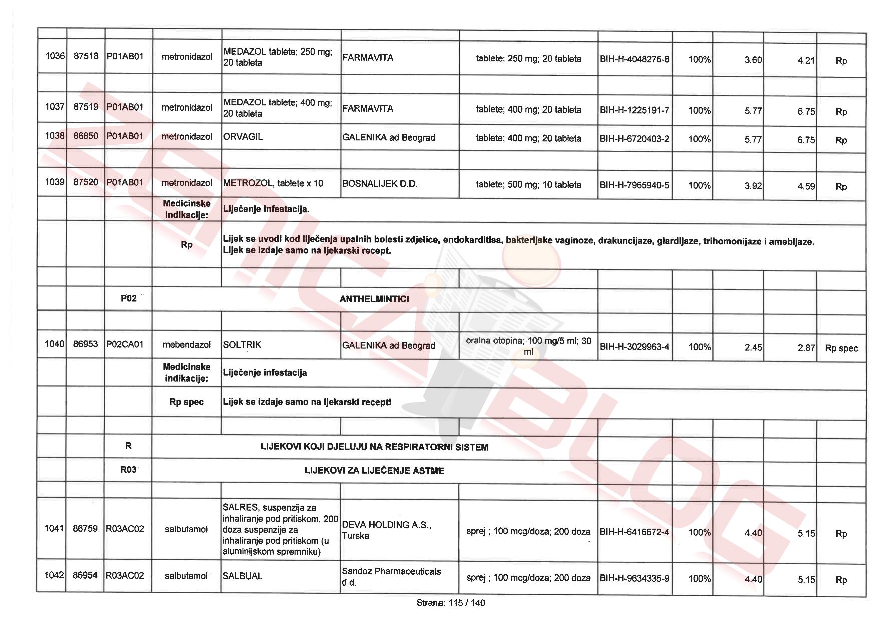 Lista lijekova ZDK je postala funkcionalna i “važeća” 15 dana nakon objavljivanja u Službenim novinama ZDK, a portal Zenicablog, ljubaznošću ministrice zdravstva ZDK Aide Salčinović, ima priliku da objavi cijelu listu sa svim lijekovima koje pacijenti u ZDK mogu u cijelosti ili djelimično dobiti finansirano iz ZZO ZDK, odnosno od strane zdravstvenog osiguranja.