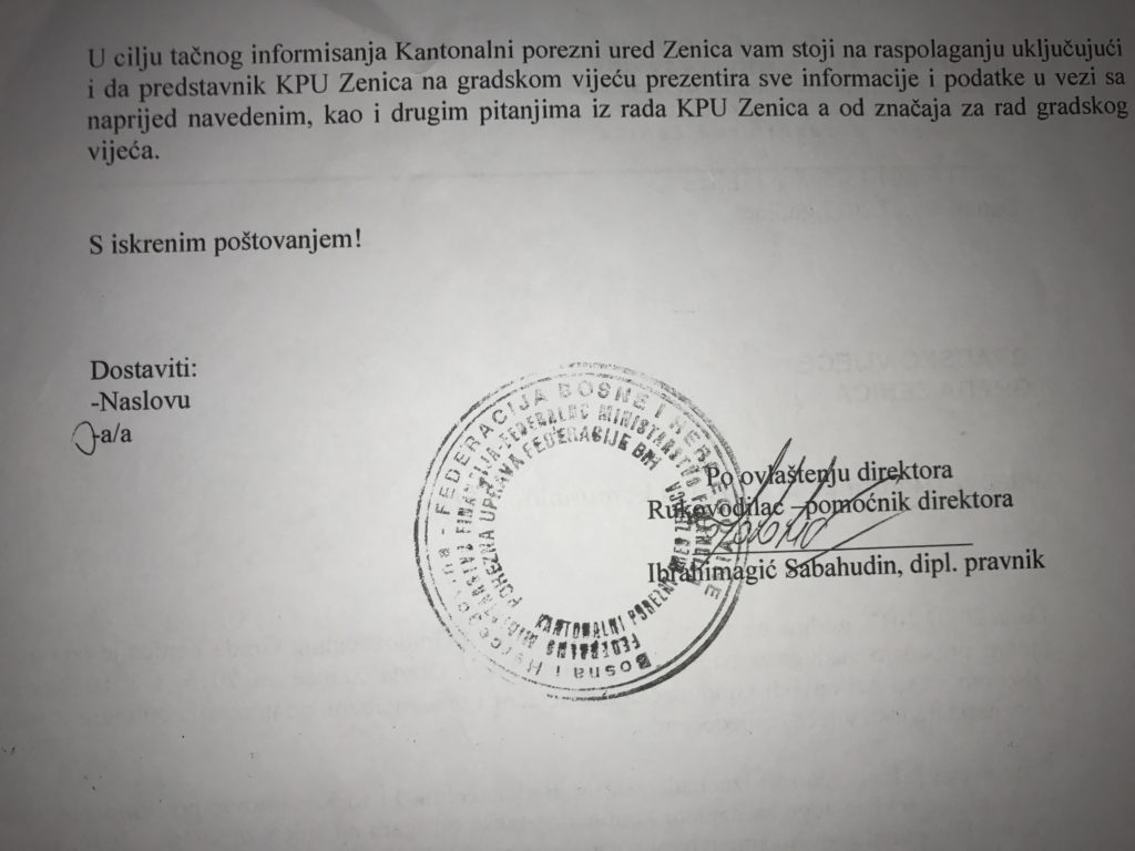 Iz Porezne uprave su naveli i da su spremni svoje navode potkrijepiti dokazima na sjednici Gradskog vijeća, ukoliko se njihovom predstavniku omogući da se obrati vijećnicima. PISMO ZENICABLOG OBJAVLJUJE U CJELOSTI: