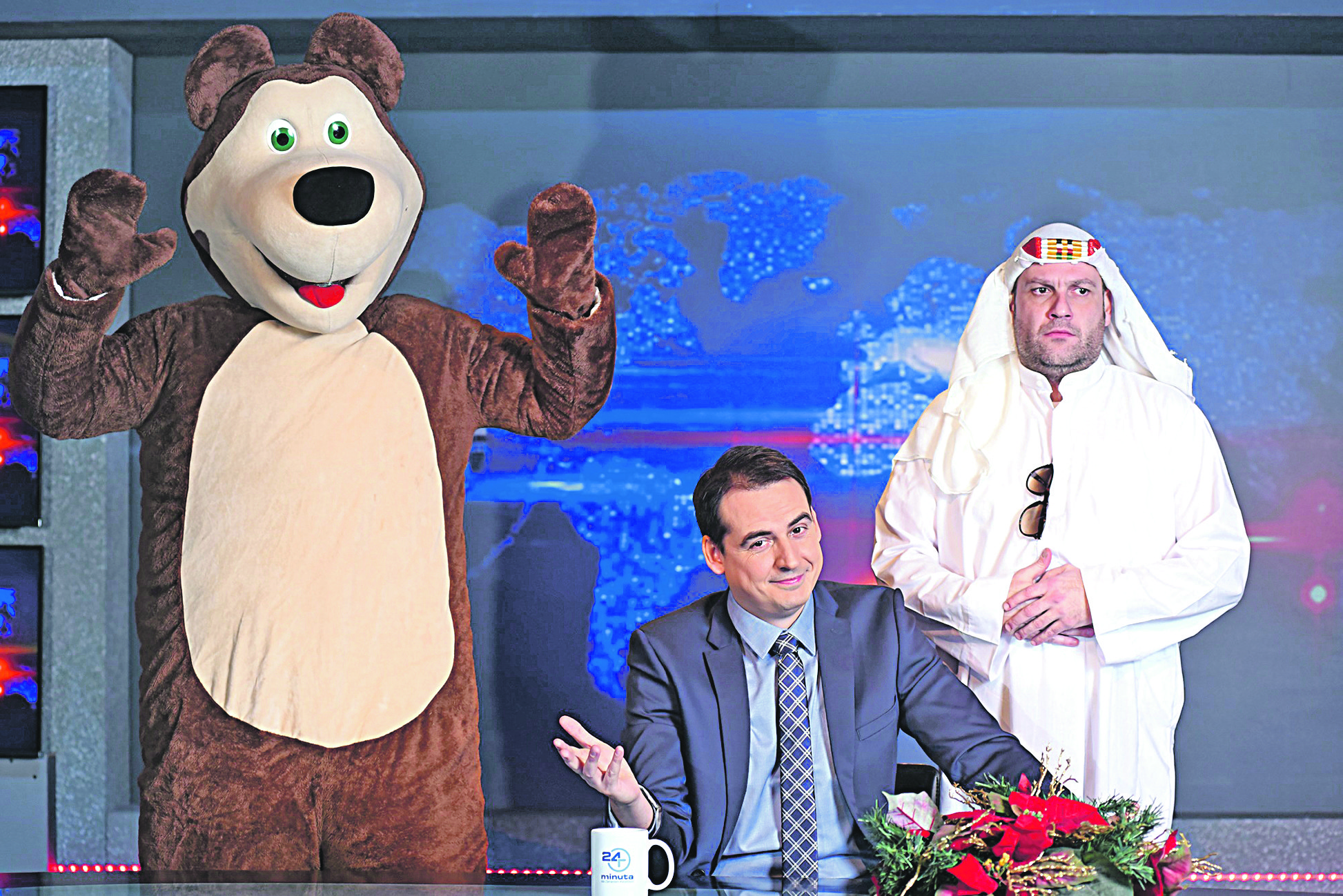 Pa glavni posao mi je emisija “24 minuta”. To je timski rad, ima nas sedmorica koji pišemo svaku epizodu i po tome me publika najviše i prepoznaje. Ove moje priredbe “Priče i pesme” su moj solo projekat. To sam pišem i izvodim pred publikom. Drugačije je nego emisija. Živi nastup pred punom salom je možda i veći izazov nego tv emisija. Ona ne može da omane. Piše je tim vrhunskih kreativaca (neskromno i sebe tu ubrajam), ali ovde sam sam na sceni sa svojim pričama i pesmama, na milost i nemilost raji koja je kupila kartu i očekuje da je zabaviš. A drago mi je što ste pomenuli i ovo za decu. To je predstava “Čarobni kliker” koju sam napisao i sa velikim zadovoljstvom je izvodim sa ekipom sjajnih glumaca, evo u decembru je bila već treća godina kako igramo. Tačnije treći decembar, jer samo u decembru je izvodimo. Deda Mraz je tad tu, već od januara on skida crveni kostim i vraća se u svoju uobičajenu ulogu popa.