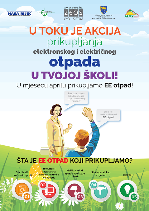 Elektro reciklaža za zeleniju budućnost- U okviru projekta „Elektro reciklaža za zeleniju budućnost“ uspješno su realizirane edukativne radionice na temu pravilnog zbrinjavanja i reciklaže elektronskog i električnog otpada u osnovnim školama iz ruralnih područja Grada Zenice, kao i u jednoj srednjoj školi.