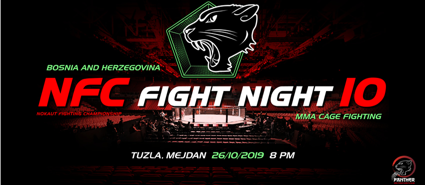 Istinski sportski spektakl NFC 10 Fight Night, će okupiti najznačajnija imena u svijetu MMA borbi u tuzlanskoj dvorani Mejdan publika će moći pratiti petnaest borbi u profesionalnom kavezu, kako domaćih boraca, tako i gostiju iz nekoliko evropskih zemalja. Planirano je ukupno 12 MMA borbi i 3 K1 borbe.