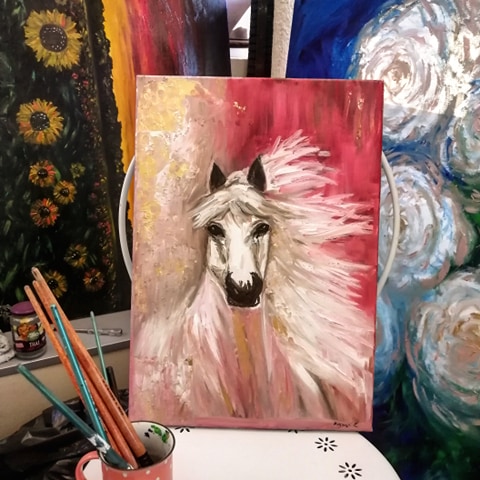 -„Slikanje i crtanje volim od malena. Još kao mala sam crtala facijalne ekspresije gledajući u strip Zagor, a voljela sam i vodenim bojicama slikati mrtvu prirodu ili bilo šta što mi je zanimljivo u tom trenutku inspiracije“ – otkrila je Emina koja slika uljem na patnu kao i olovkom na papiru.