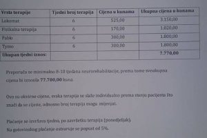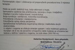 Preporuka ljekara je odvesti Sajjru na robot lokomat, a na robotu je pokazala dobre prognoze. Ovu vrstu rehabilitacijskog centra imamo u Dubrovniku, ali nažalost sredstva nemamo.