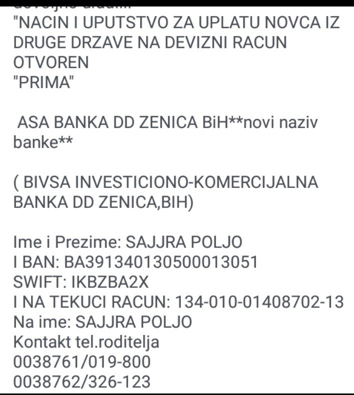 Sajjri možete pomoći uplatama na račun, te vam brojeve računa prilažemo ispod teksta. Za sve dodatne informacije, postavljamo i brojeve telefona Sajjrinih roditelja, koje možete kontaktirati za sve nejasnoće, pitanja i detalje.