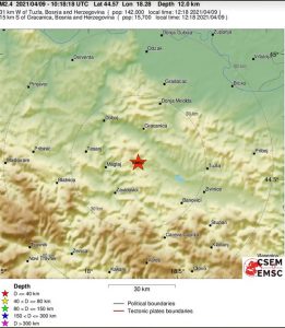Centralnu BiH je pogodio zemljotres. Naime, kako navodi Euromediteranski seizmološki zavod, epicentar zemljotresa danas iza podneva je bio 36 kilometara sjeverno od Zenice, odnosno tri kilometra od Zavidovića, a iznosio je 2,8 stepeni po Richteru.