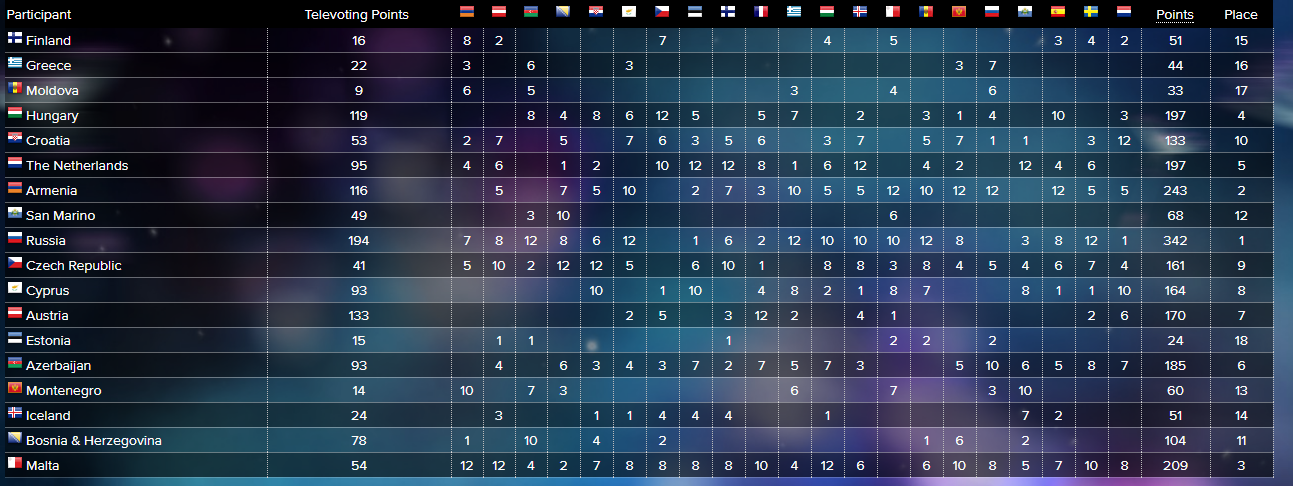 Objavljeni su rezultati polufinalnih takmičenja Eurosonga. Bosna i Hercegovina se, podsjećamo, nije plasirala u samu završnicu, a zanimljivo je bilo pogledati konačnu tabelu koja je otkrila koliko je bh. predstavnicima zapravo nedostajalo za uspjeh.