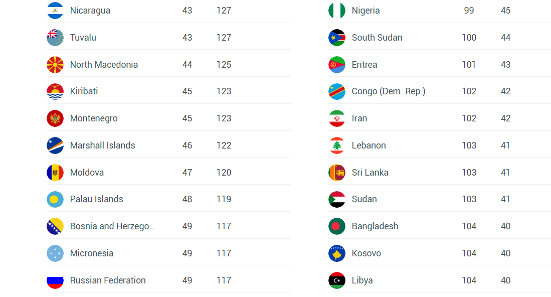 Posljednji je Afganistan, čiji građani slobodno mogu putovati u svega 26 zemalja svijeta. Zanimljivo je da je iznad te zemlje, na 105. mjestu, čak i Sjeverna Koreja koja tradicionalno važi za vrlo zatvorenu zemlju.
