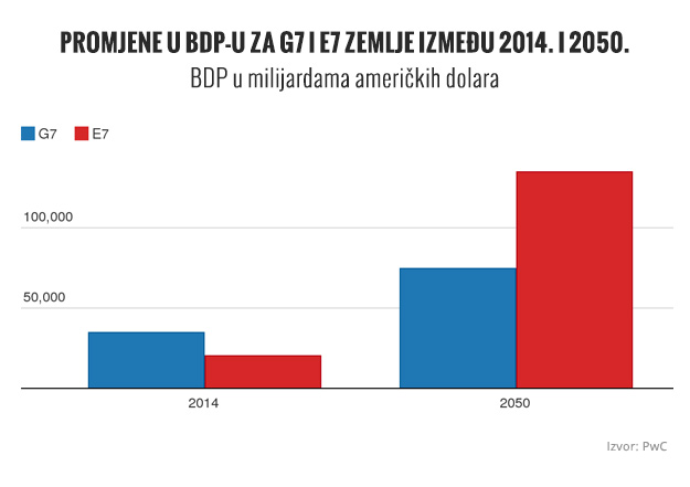 3. Kad je riječ o BDP-u zemlje s rastućim gospodarstvom preuzet će ulogu današnjih G7 zemalja.