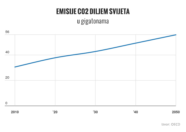 8. Emisije ugljičnog dioksida bit će u stalnom porastu do 2050. godine.