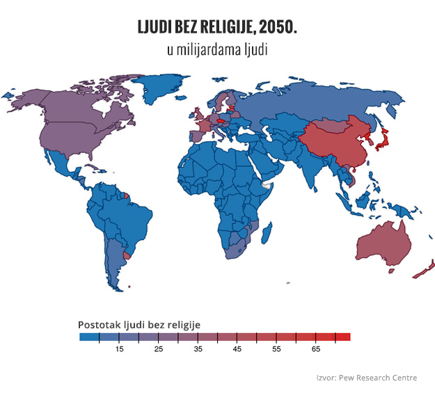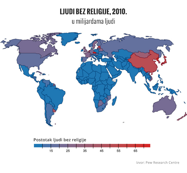 5. Broj ateista će rasti, ali ne u zapadnim zemljama.