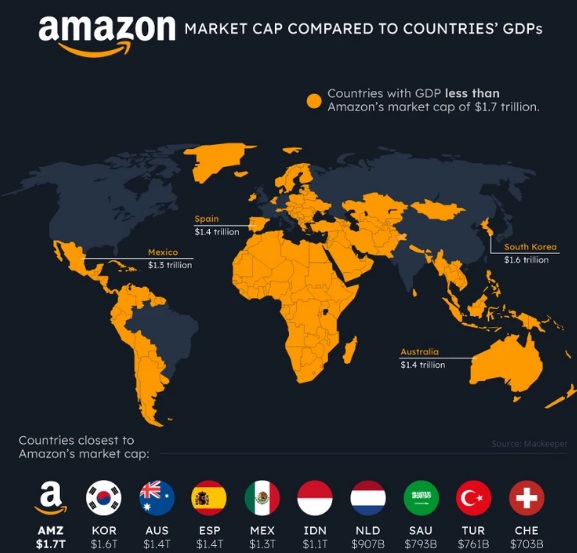 Sa online prodajom čija je potražnja drastično skočila, tržišna vrijednost Amazona se popela na 1,7 biliona dolara, što ga čini većim od 92 posto ekonomija u svijetu.