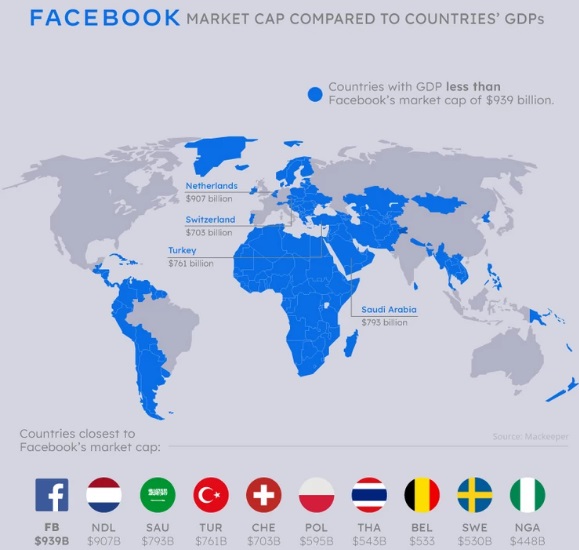 Facebook sa svojom vrijednošću od 939 milijardi dolara, izmiče ekonomijama Holandije, Ujedinjenih Arapskih Emirata, Turske…