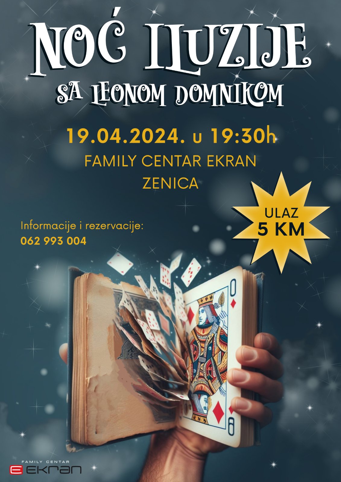 Dragi naši gosti, u petak 19.04. vas očekuje Noć iluzije sa našim sugrađaninom, učesnikom i polufinalistom Supertalenta, Leonom, koji je za nas i vas spremio nevjerovatne trikove koje nikoga ne ostavljaju ravnodušnim!