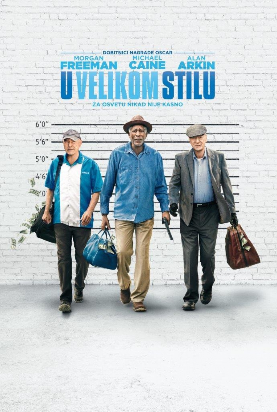Za osvetu nikad nije kasno! Trojica hollywoodskih velikana i dobitnici nagrade Oscar nasmijat će vas do suza kao pljačkaši banke!  „U velikom stilu” je remake filma iz 1979. godine.  Trojica umirovljenika, Willie, Joe i Al, koji žive zajedno i polako trunu u beskrajno jednoličnim danima, očajnički tražeći način kako platiti zaostale račune i provesti  više vremena sa svojim najmilijima. U jednom trenutku odluče opljačkati svoju banku kako bi se domogli svojih novaca. Od zamršenog planiranja do savršene provedbe, ova će pljačka trojcu koje je društvo otpisalo, udahnuti novu energiju. Ako im pođe za rukom, novac će im sigurno dobro doći, a ako ih uhvate, što je najgore što se može dogoditi trojici staraca? Možda će otići u zatvor, možda u grob. U svakom slučaju, otići će “U velikom stilu”.