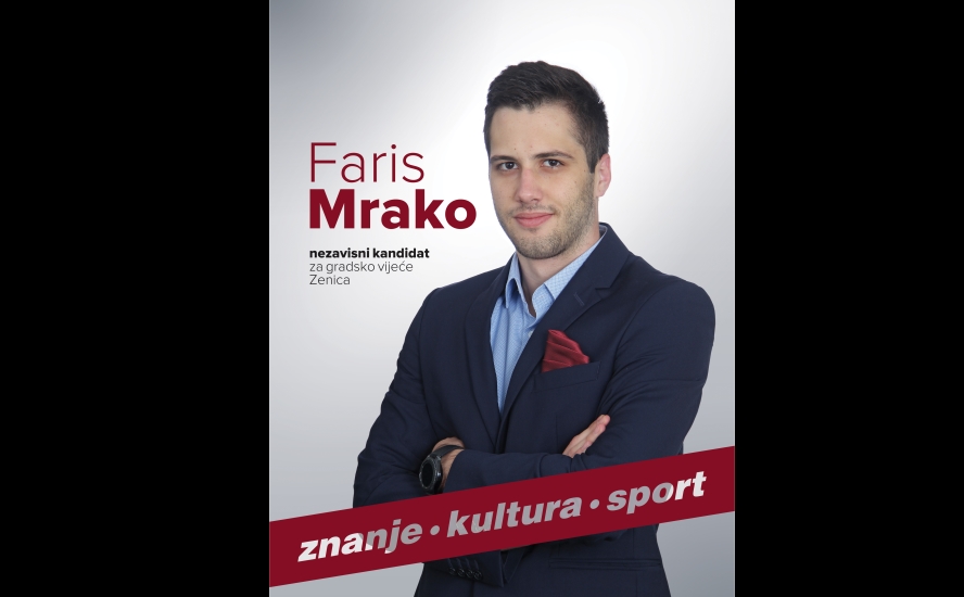 Faris Mrako – nezavisni kandidat za Gradsko vijeće Zenica – Faris Mrako, nezavisni kandidat za Gradsko vijeće Zenice, inače vrlo uspješni redovni student treće godine Filozofskog fakuleta Univerziteta Zenica , po drugi put je primo dekanovu nagradu ,,student godine”, za prosjekom ocjena od 9,7.