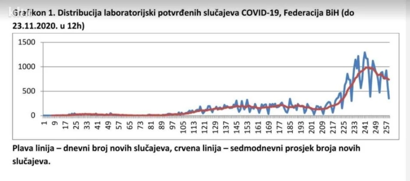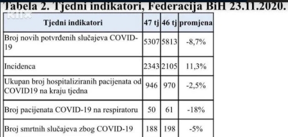 Posljednje naredbe odnosno mjere ograničenja radnog vremena ugostiteljskih objekata do 23:00 sati, preporuka uvođenja rada od kuće ili kliznog radnog vremena, online nastava i uvođenje ograničenog kretanja odnosno policijskog sata od 23 sata do 5 ujutru doveo je do toga da se širenje koronavirusa u FBiH polako smiruje što najbolje pokazuju podaci o broju zaraženih u posljednjih sedam dana. Odmah treba istaći da je epidemiološka slika daleko od poželjne, ali čini se da ide u dobrom pravcu.