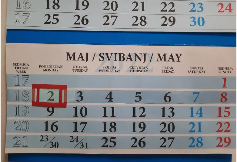 U skladu s navedenim, a s obzirom da 1. maj 2022. godine pada u nedjelju, iz Federalnog ministarstva rada i socijalne politike obavještavaju javnost da su neradni dani u Federaciji Bosne i Hercegovine nedjelja 1. maj/svibanj, ponedjeljak 2. maj/svibanj i utorak 3. maj/svibanj 2022. godine.