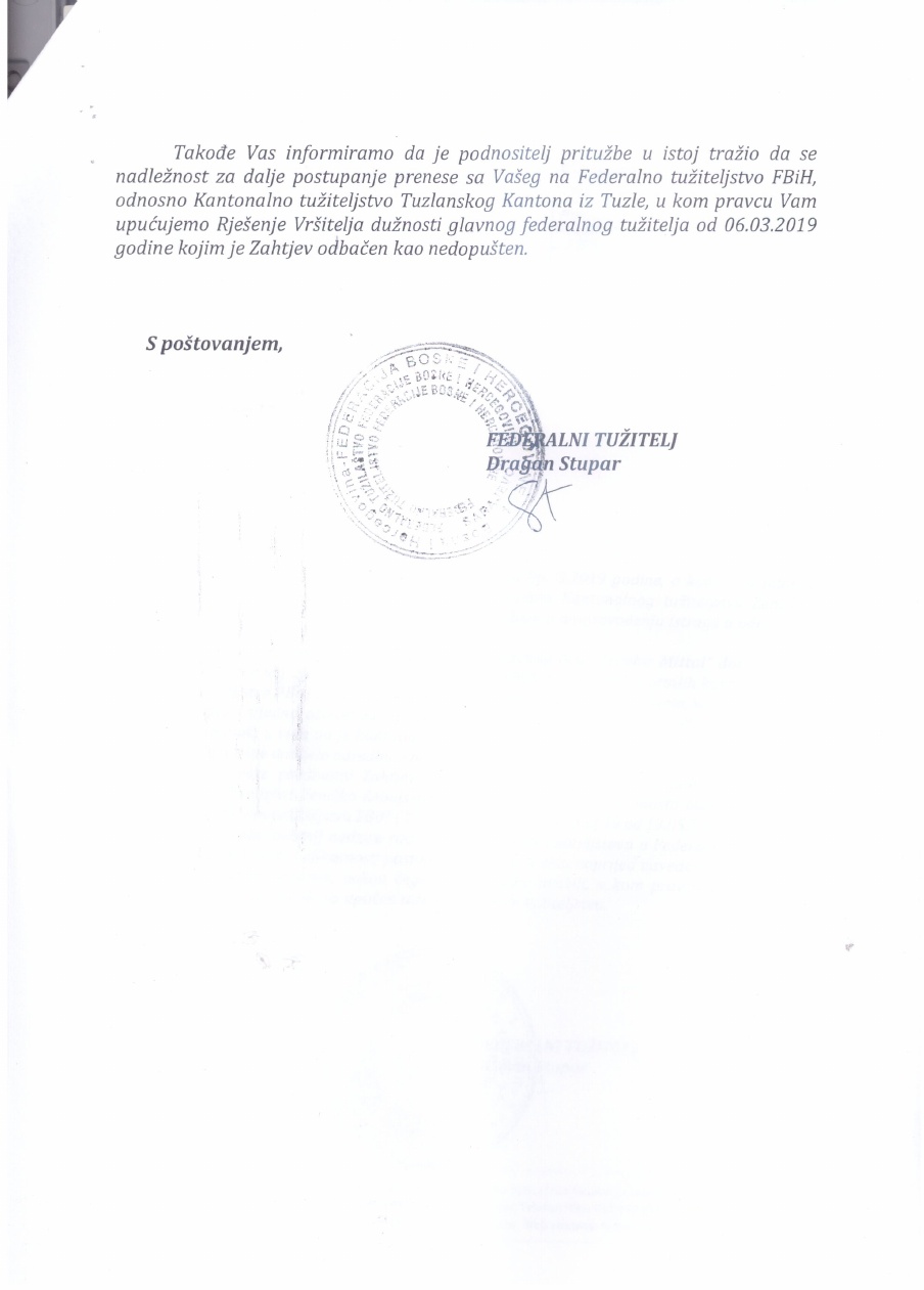 U prilogu možete pročitati kompletan tekst odluke Federalnog tužilaštva