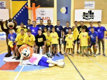 Prije same dodjele medalja, pobjednike KInder+Sport CUP-a, takmičenja u košarci ali i goste je na terenu izazvao bh. reprezentativac u košarci, Adi Zahiragić. Ministar kulture i sporta KS, gdin. Mirvad Kurić, kapiten Fudbalskog kluba Sarajevo, Krste Velkoski, SIM-ovci te Adi Zahiragić zajedno su pucali trojke, te zabavili sve mališane u publici. Nakon tog uslijedila je Poli tekma. U jednom timu, pod nazivom „Bordo-Plavi“, igrali su fudbaleri Fudbalskog kluba Sarajevo, Krste Velkoski, Vladan Kovačević, Haris Handžić, Nihad Mujakić, Mersudin Ahmetović, te Juniori FK Željezničara, Alen Nuhanović, Nedim Aljić i Vedad Muftić, dok su protivničku ekipu činili najmlađi SIM-ovci, Ministar kulture i sporta KS, gdin. Mirvad Kurić, Bingosi, Lino i maskota Igara, SIM-a. Ekipe su na terenu imale i posebnog gosta, Enisa Bešlagića, koji je ovu utakmicu komentarisao i sudio te napravio posebnu atmosferu u dvorani. Fudbaleri FK Sarajeva su, na radost svih dječaka i djevojčica, najsretnijima podijelili i poklone ovog kluba, a mnogi su iskoristili priliku i za fotografisanje sa bh. sportistima te Enisom Bešlagićem.