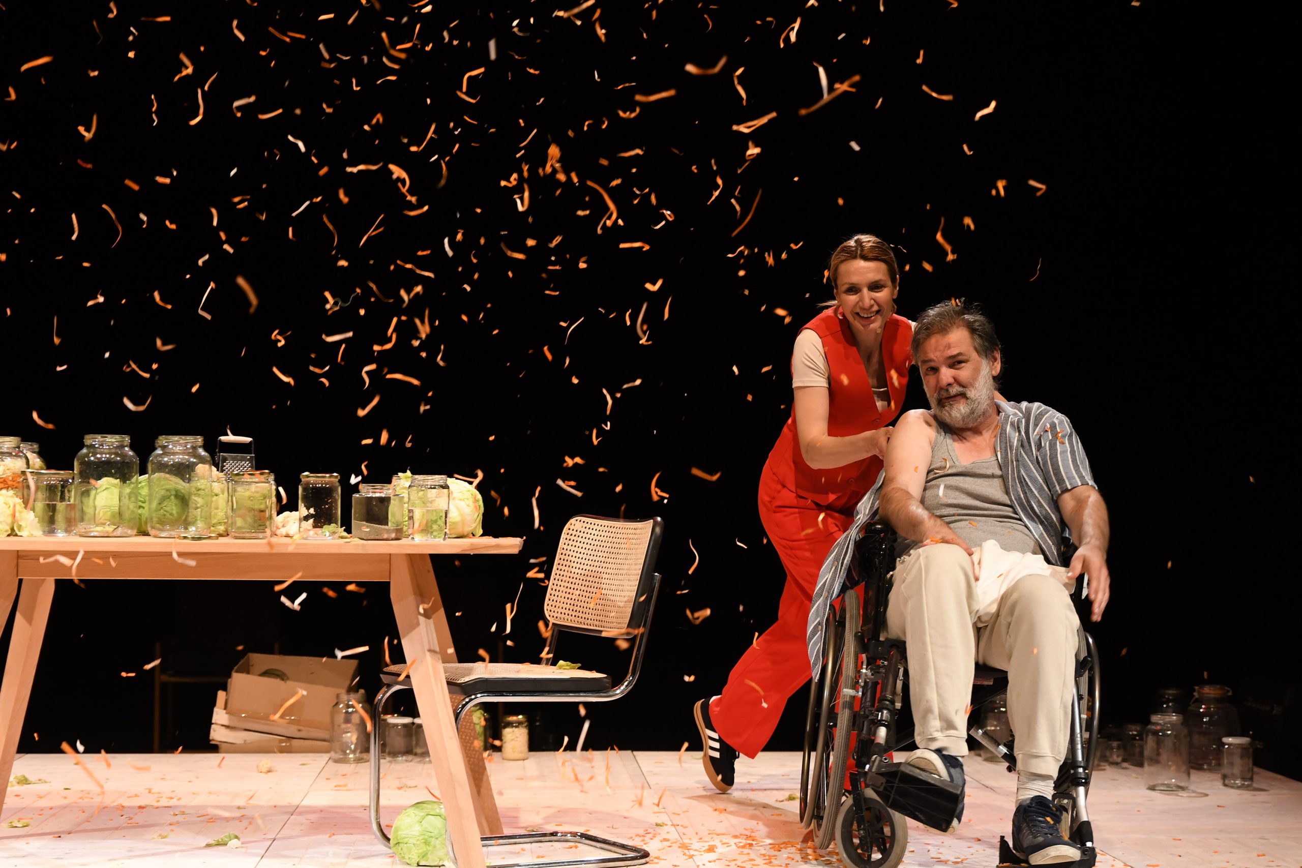 U predstavi igraju: Gordana Boban, Mirvad Kurić, Selma Mehanović i Benjamin Bajramović. Dramaturginja predstave je Asja Krsmanović. Scenografija predstave je bila povjerena Sabini Trnki, a kostimografija Irmi Saje, dok je za muziku bio zadužen Enes Zlatar.