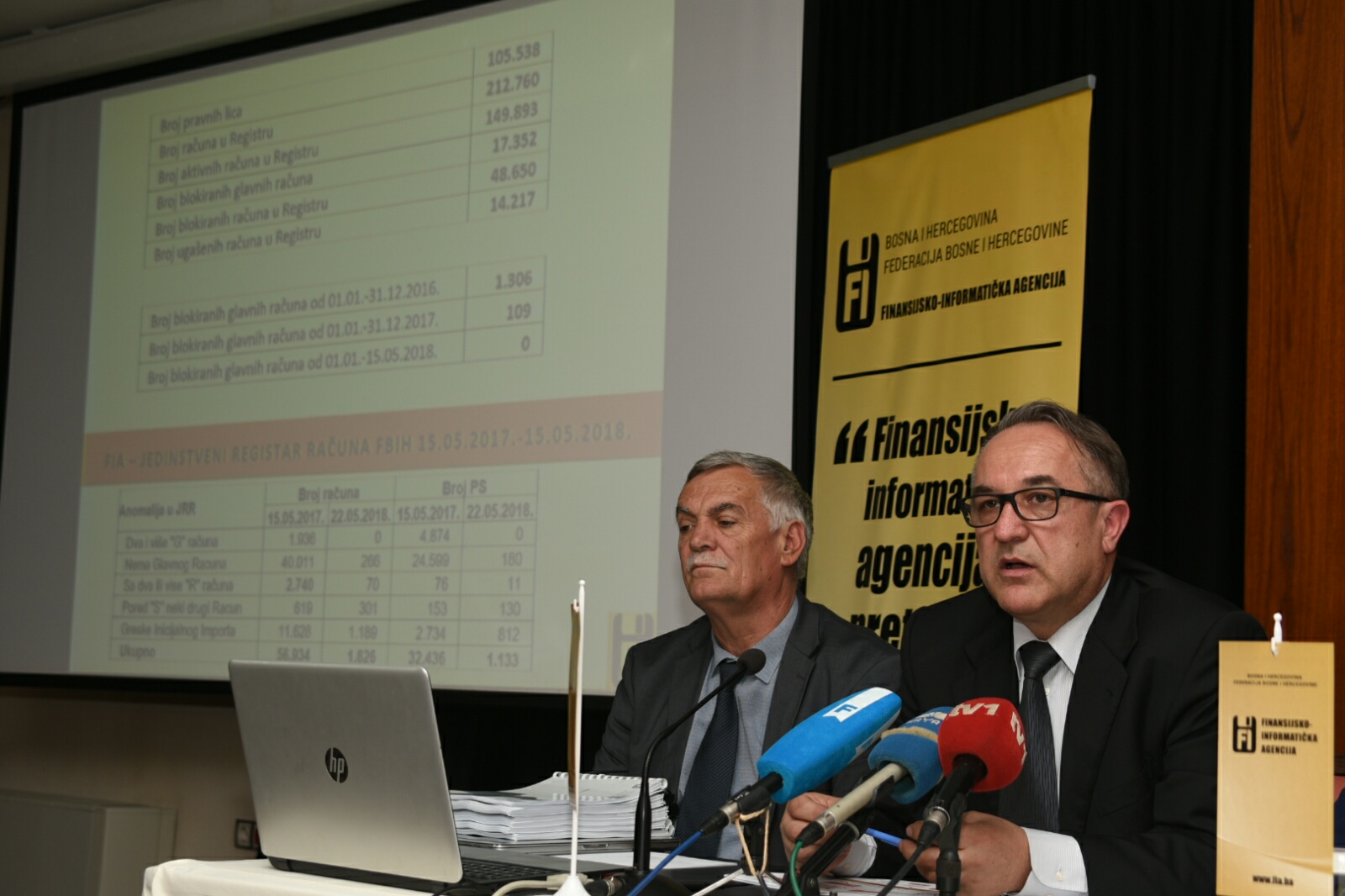 Direktor Mahmutović je skrenuo pažnju da je prema pokazateljima FIA, u 2016. Godini 1.306 kompanija sa blokiranim računima, 2017. godini 109, a u 2018. još nije blokiran nijedan račun kompanija, tako da tvrdnje o više od 70.000 blokiranih računa nisu relevantne.