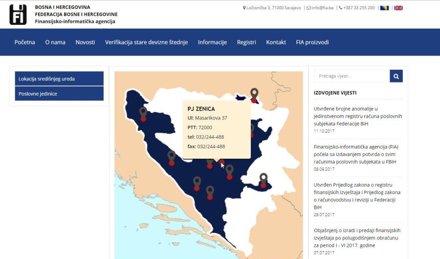 Građani FBiH će predavati zahtjeve u ispostavama FIA, koje se nalaze u 45 općina u Federaciji BiH. u Zenici je to u Masarykovoj ulici, prekoputa zgrade Kantonalnog suda Zenica.