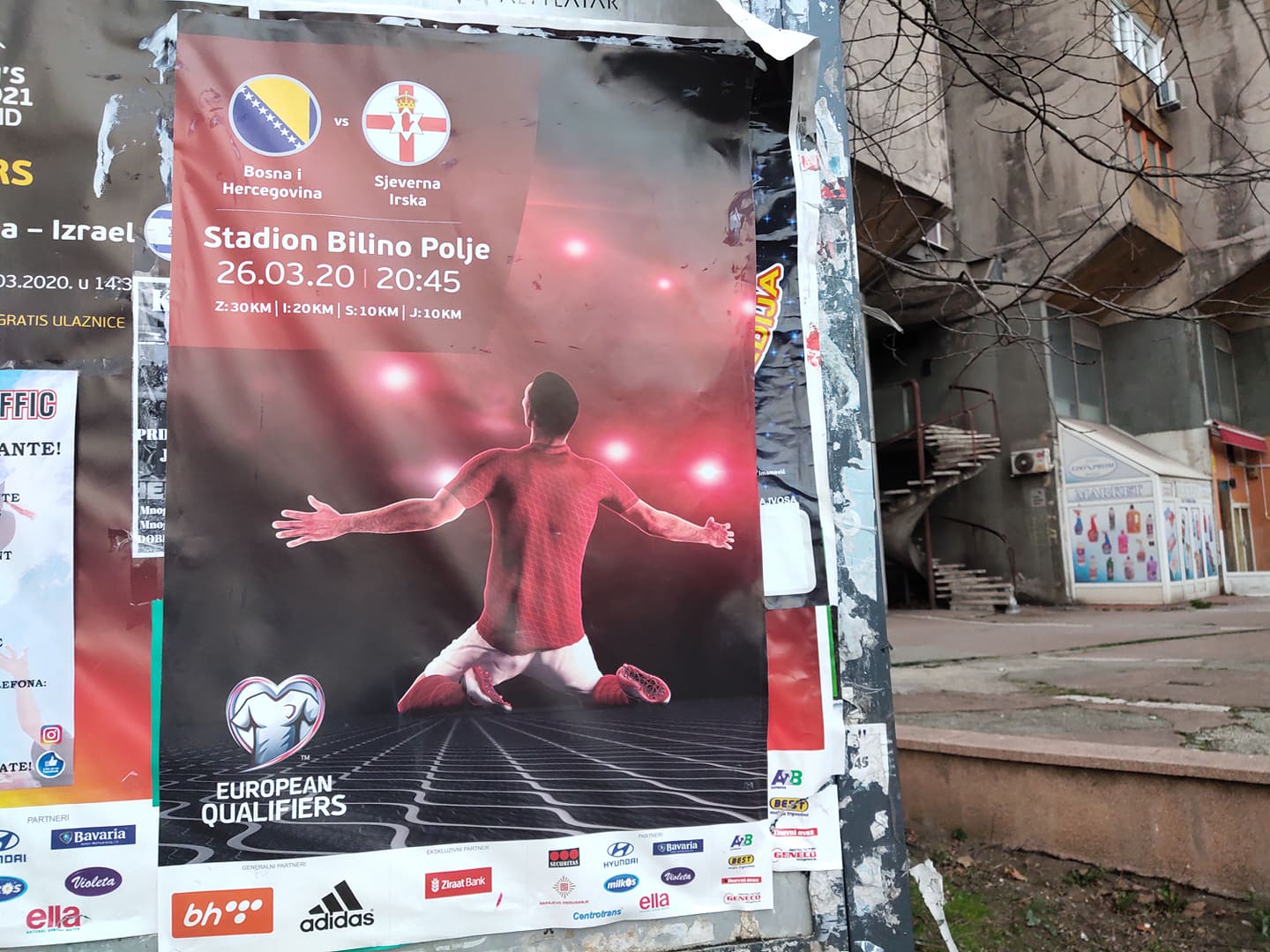 Meč fudbalskih reprezentacija Bosne i Hercegovine i Sjeverne Irske još uvijek nije otkazan. Susret je planiran da se igra 26. marta na stadionu Bilino Polje ali obzirom na svu paniku koju je širom Evrope stvorio koronavirus pretpostavlja se da će i ovaj meč biti odgođen. Ipak, bez obzira na to Zenica je od danas obljepljena plakatima koji najavljuju ovaj izuzetno važan susret.