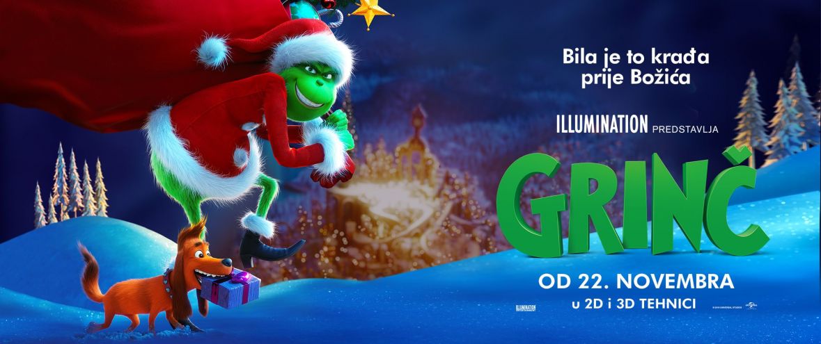 Universal Pictures i Ilumination predstavljaju fenomenalnu animiranu avanturu, baziranu na književnim, prazničnim klasicima doktora Seussa. Grinč kreće u misiju da ukrade Božić, ali se njegovo srce do kraja te avanture mijenja zahvaljujući neobuzdanom duhu djevojčice koja vjeruje u Božić i čaroliju praznika. Duhovit, toplo i vizuelno očaravajući film pričat će nam univerzalnu priču o prazničnom duhu i nesavladivoj snazi optimizma.