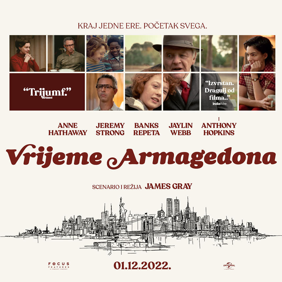 Od četvrtka 1. decembra u naša kina stiže najnoviji film redatelja Jamesa Graya, “VRIJEME ARMAGEDONA” (ARMAGEDDON TIME). Film koji se okupio neka od najznačajnijih i najzvučnijih imena Hollywooda oduševit će ljubitelje sedme umjetnosti.