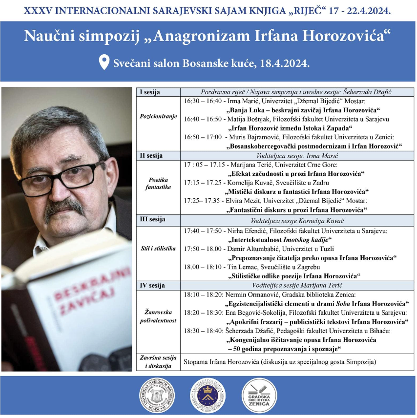 Filozofski fakultet je bio i suorganizator Naučnog simpozija “Anagronizam Irfana Horozovića” zajedno sa Pedagoškim fakultetom Univerziteta u Bihaću i Gradskom bibliotekom Zenica. Simpozij je, također, održan u okviru Sarajevskog sajma knjiga, a naši nastavnici su prezentirali svoja istraživanja o Irfanu Horozoviću.