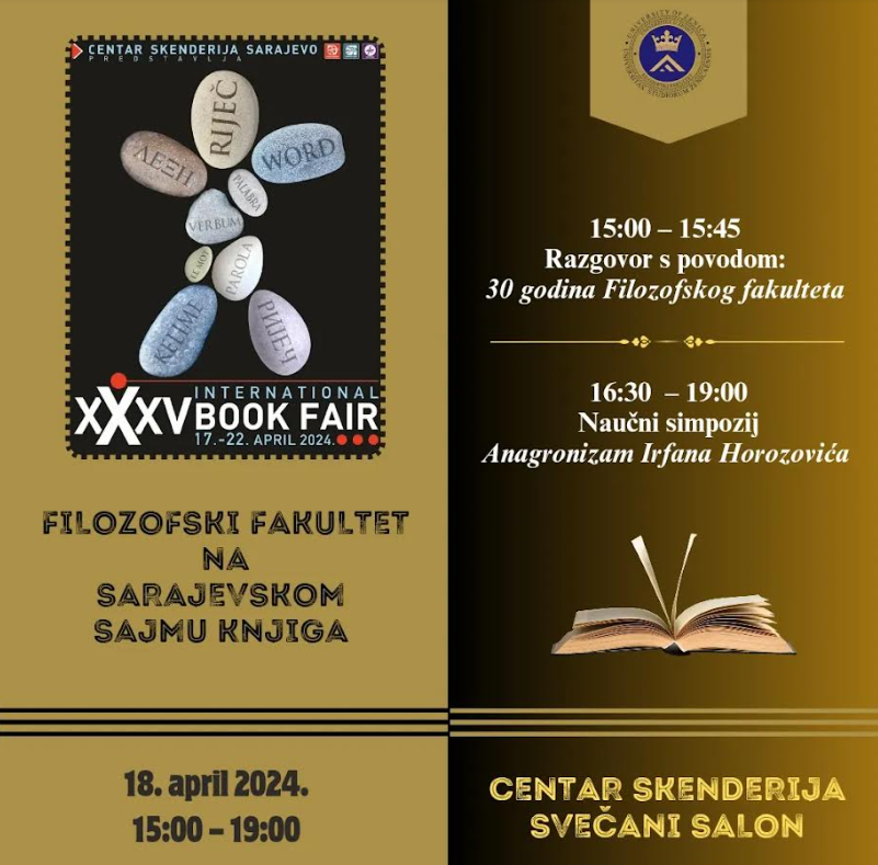 Jučer je na Sarajevskom sajmu knjiga održan Razgovor s povodom: 30 godina Filozofskog fakulteta u Zenici, gdje su predstavnici našeg fakulteta govorili o aktivnostima u okviru Dana Filozofskog fakulteta, izdavačkoj djelatnosti Fakulteta i naučno-istraživačkom radu.